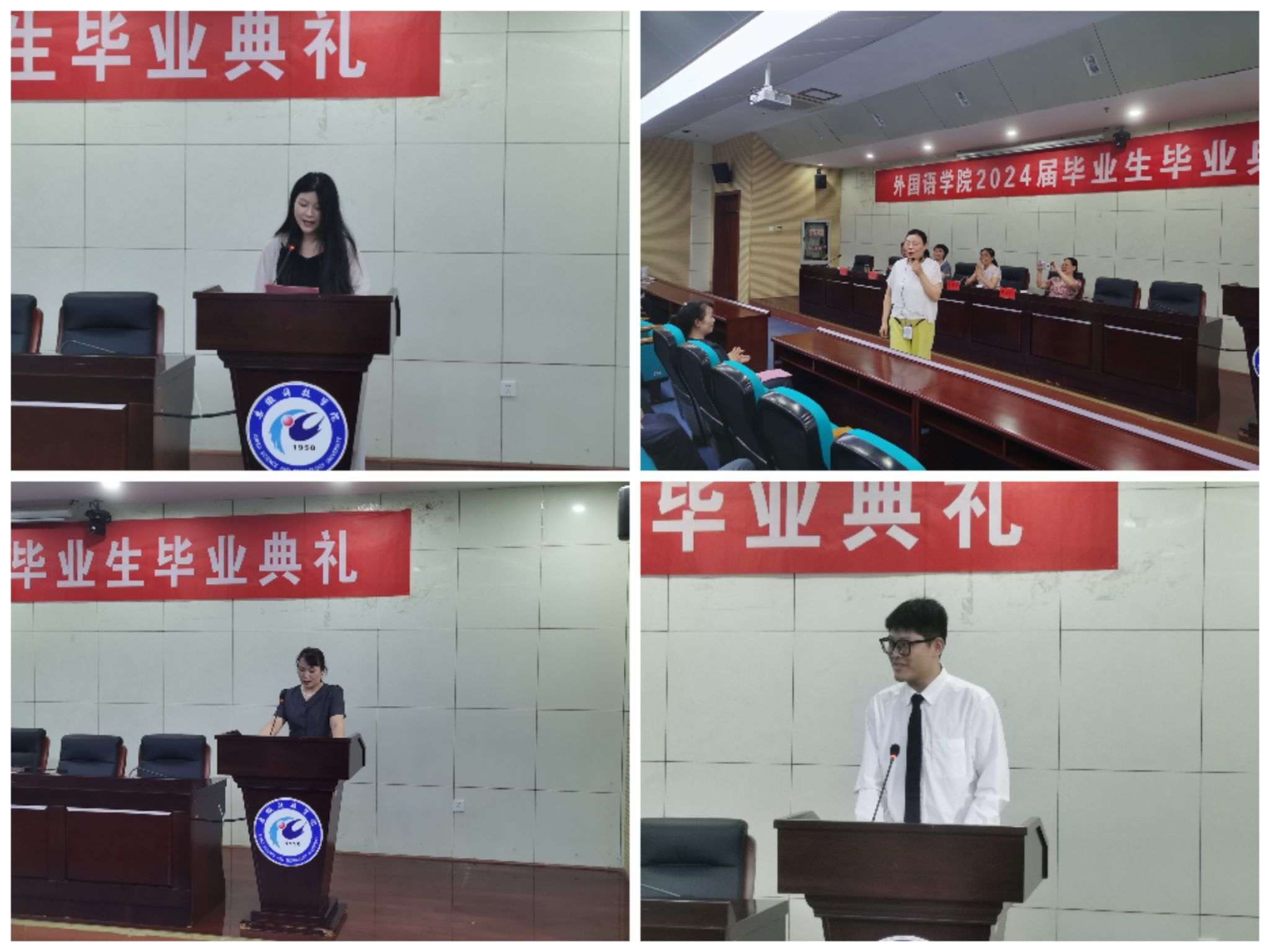 奋楫扬帆启新程,踔厉奋进向未来。6月18日下午,外国语学院2024届毕业生毕业典礼在新图书馆第一报告厅隆重举行。外国语学院党政领导出席毕业典礼。外国语学院教师代表、毕业班辅导员、毕业生家长代表以及毕业生代表参加毕业典礼。典礼由学院党委书记蔡为青主持。