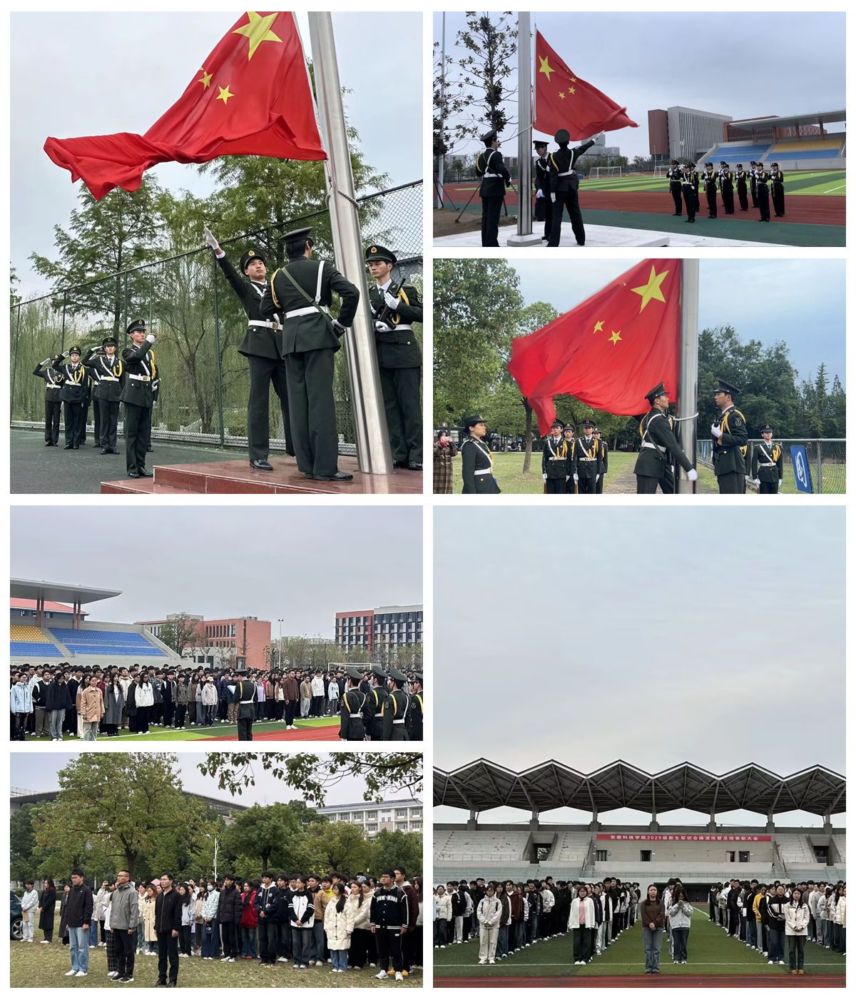 为进一步加强爱国主义教育,10月20日清晨,我校“国旗下的思政课”活动在凤阳校区、龙湖校区和滁州校区同步举行。学生处、动物科学学院、化学与材料工程学院、智能制造学院2025级全体学生等1000余名师生参加。活动分别由校国旗护卫队队员杨轹文、许磊、贾宏伟主持。