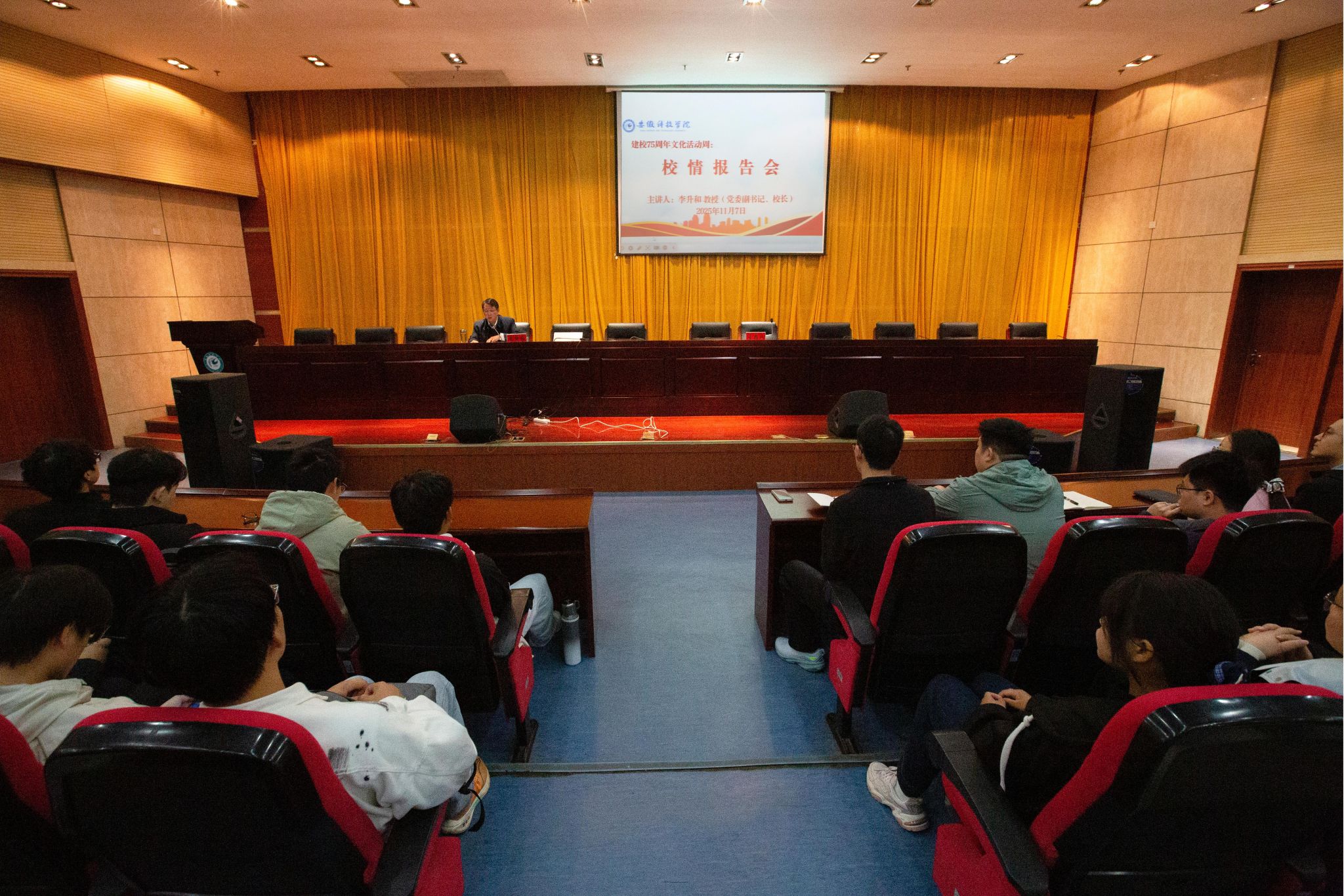 时值建校七十五周年,此次报告会不仅是一次校情校史的集中宣讲,更是一次凝聚共识、开创未来的动员。站在新的历史起点,全体安科人将从七十五载奋斗历程中汲取智慧与力量,共同谱写学校高质量发展新篇章,为开创中国式现代化建设新局面贡献更大力量。(摄影:陈宝 审核:胡文靖 编辑:李锦)