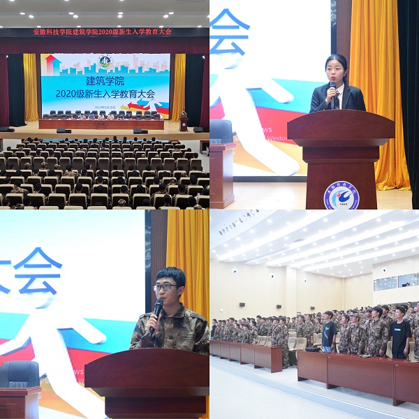 大会在庄严的国歌中拉开序幕。建筑学院院长张远兵首先致辞。他代表学院表达了对2020级全体新生的热烈欢迎,简要介绍了学院的基本情况,并向新生提出三点希望:一是积极适应大学生活,快速完成角色转变;二是尽早确立人生目标,全面提升综合素质;三是坦然面对挫折和挑战,不断超越自我,在接下来的大学生活中,真正成长为“实践、创新、敬业、垂范”的安科人。