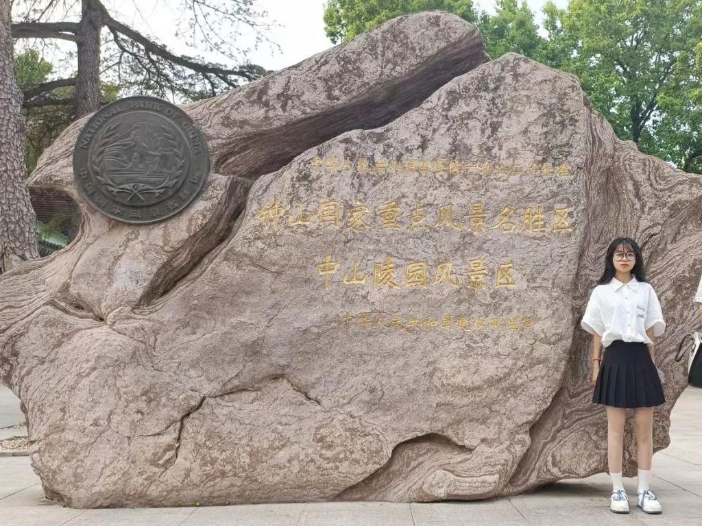团队成员来到中山陵园风景区,瞻仰革命先行者孙中山先生。当团队成员来到广场时,首先看到的是高大的三门石牌坊,上面刻有孙中山先生手书“博爱”两字。再到陵门,陵门以青色的玻璃瓦为顶,门额上是孙中山先生的手迹“天下为公”四个字。站在陵前高台上,整座中山陵在青山绿树的环抱之中尽收眼底。团队成员黄苏琳不禁感慨道:“石料不会生长,它们象征着沉闷严肃的历史;草木时时更新,它们代表着充满希望的当下。孙中山先生是革命先行者,他爱国爱民的情怀永远值得大家敬佩。”