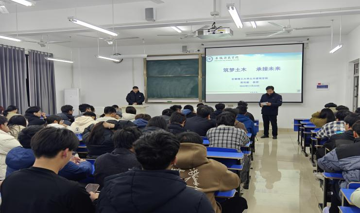 本次报告会由科研处和建筑学院主办。学院负责人、土木工程专业师生近100人参加报告会。