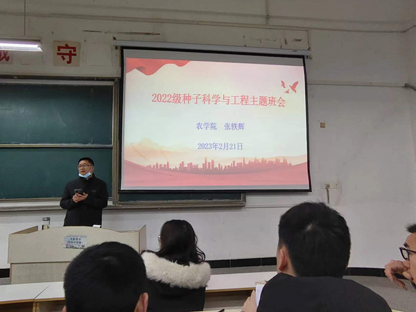 2月21日上午,2022级种子科学与工程专业在求知楼A105召开主题班会,辅导员张轶辉主持。2022级种子科学与工程专业全体学生参加。