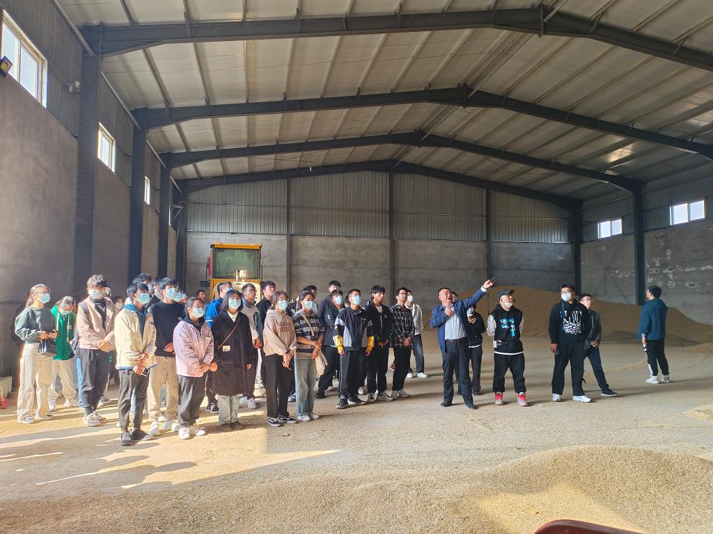 凤阳县中益农业发展有限公司占地面积80余亩,其中加工厂房4800平方米,12栋国家粮食储备仓库仓储能力达每年8万吨,企业拥有年生产10万吨大米生产线和日处理200吨谷物烘干生产线,公司先后被评为“安徽省粮食产业化龙头企业”“安徽省农业产业化龙头企业”,所生产的“中益”“明王贡”牌粳糯稻谷、粳糯米、中籼稻谷、中籼米被农业农村部认证为“无公害农产品”,并获得“全国放心粮油”称号,“明王贡”品牌被授予“安徽省著名商标”称号。公司积极参与脱贫攻坚,在马山村建立了粮食烘干中心和农机化服务中心,提出了“耕种灌防收储销,全托半托任你挑”乡村农业生产思路,以实际行动助力乡村振兴。同学们参观了公司的仓库、加工车间、烘干车间,在企业参观过程中,感受到了农业企业的蓬勃发展及对乡村振兴的拉动作用。