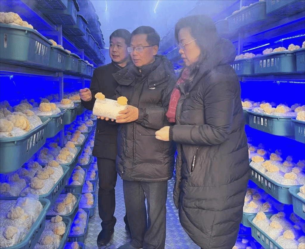 1月16日,农学院何华奇教授与生命与健康科学学院孙玉军教授、乐动网页版登录入口_乐动网页版(中国)创业大学生——安徽来一克实验科技有限公司总经理郭凯等到长丰县中国菌物谷考察食用菌智慧方舱项目。安徽省食用菌行业协会会长、玉隆农业高科技股份有限公司总经理常莹等陪同参观。