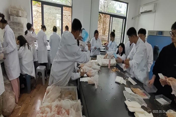 余海兵教授围绕玉米种质资源保存为同学们进行了技术培训。入党积极分子们在研究生的指导下,对1200份糯玉米、2900份普通玉米种质资源进行分类整理。同学们认真对待每一颗玉米粒,精确地将玉米粒进行种质资源分类。同学们相互配合、团结协作,整个操作精确无误、衔接紧凑。