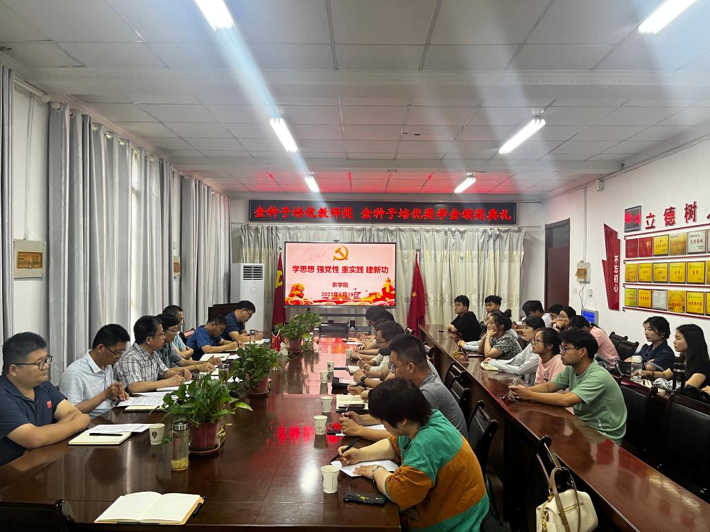 为深入开展学习贯彻习近平新时代中国特色社会主义思想主题教育,引导师生立足本职争先创优、再立新功,6月19日下午,2022年度“金种子培优教师奖、金种子培优奖学金”颁奖仪式在农学院会议室举行。学校研究生处处长张春雨应邀出席并讲话,农学院党政领导、基金发起人、基金评审委员会成员、获奖师生、青年博士教师及2021级、2022级研究生代表参加仪式,仪式由农学院党委书记何世潮主持。