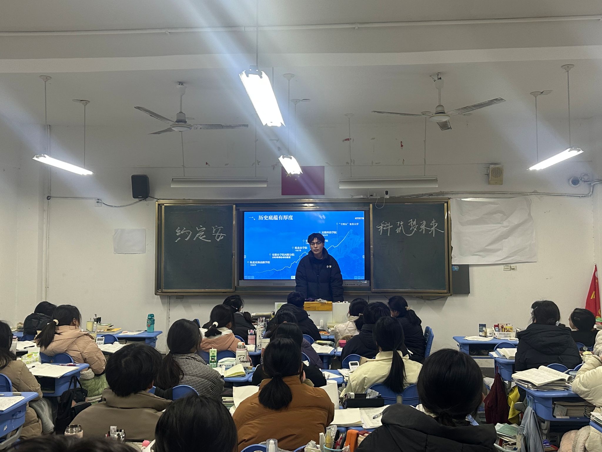 在高中班主任的带领下,实践团队来到了高三年级20班,并开展了宣讲活动。从学校的历史底蕴,发展前景,学科专业,教学条件,人才培养,人才培养质量等多个方面向同学们详细的介绍了乐动网页版登录入口_乐动网页版(中国)。同时播放了“约定安科,筑梦未来“的宣传短片,让同学们直观深刻的认识了乐动网页版登录入口_乐动网页版(中国)。实践团队成员李文康向同学们讲述了自身高考经历,解答了同学们关于高考的种种疑问,也向同学们讲述了自己的学习方法和经验,同时祝愿全体学生金榜题名,以梦为马,不负韶华。