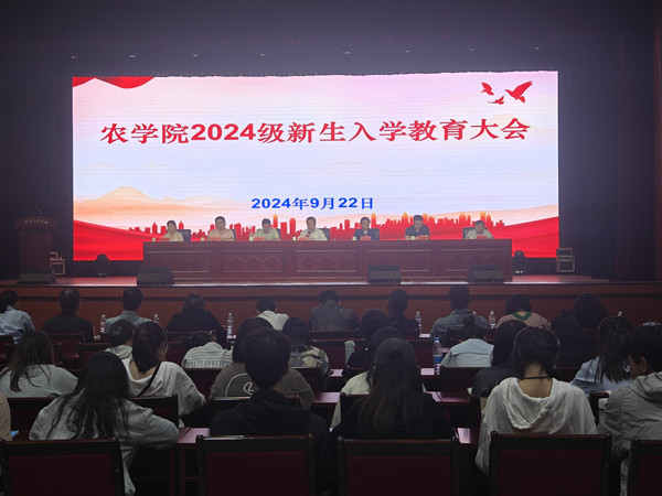 9月22日晚上农学院在大学生活动中心隆重召开2024级新生入学教育大会。农学院党政领导、全体辅导员、各系(实验中心)主任、农学院2024级本科生、2024级研究生参加会议。大会由学院党委书记何世潮主持。