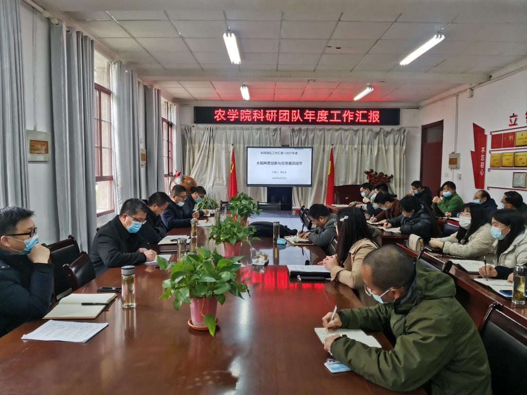 3月23日下午,农学院在学院会议室召开各科研团队年度工作总结汇报交流会。学院党政领导及全体教职工参加了会议。会议由党委副书记、院长崔广荣主持。