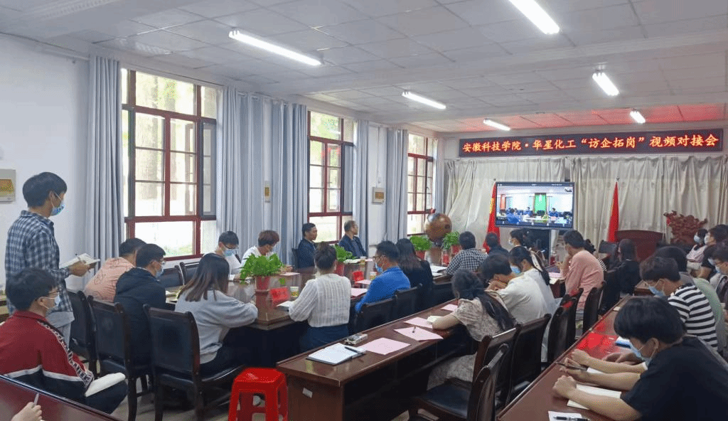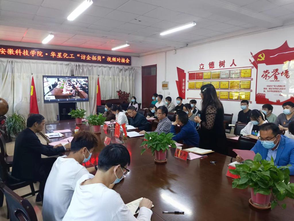 为贯彻落实教育部、省委省政府关于高校毕业生就业工作的决策部署,实现人才培养与就业岗位深度对接,助力毕业生疫情防控常态化背景下高质量就业,5月3日, 农学院在学院会议室举办“访企拓岗”视频对接会。校党委副书记、校长李震出席,招生与就业工作处副处长何晓冬,农学院党政领导、植物保护系毕亚玲等教师代表和毕业生代表参加会议,参会企业安徽华星化工有限公司党委书记、总经理颜泽彬,常务副总经理李文明以及相关职能部门负责人、就职于华星化工的我校校友代表等在和县、合肥等地视频出席会议。