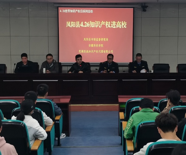 邀请了凤阳县市场监督管理局的领导和知识产权领域的专家学者来校分享经验,为师生们深入浅出地讲解了知识产权的基本概念、法律法规、申请流程等知识以及知识产权保护和转化方面的政策。讲座过程中,学校还紧密结合学校教学科研实际,展示了学校近年来在知识产权创造、保护和运用方面取得的成果,激发了师生们对保护知识产权工作的热情与信心。