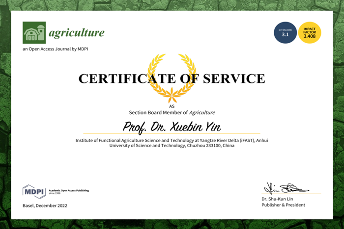 我校长三角功能农业(食品)研究院院长尹雪斌教授受邀担任国际农学知名刊物《Agriculture》编委,以促进功能农业新兴方向的科技成果交流。这是我校聚焦农业前沿交叉创新领域,战略引进功能农业领军人才,聚力加快打造“新农科”,扩大优势学科国际影响力方面的最新进展。