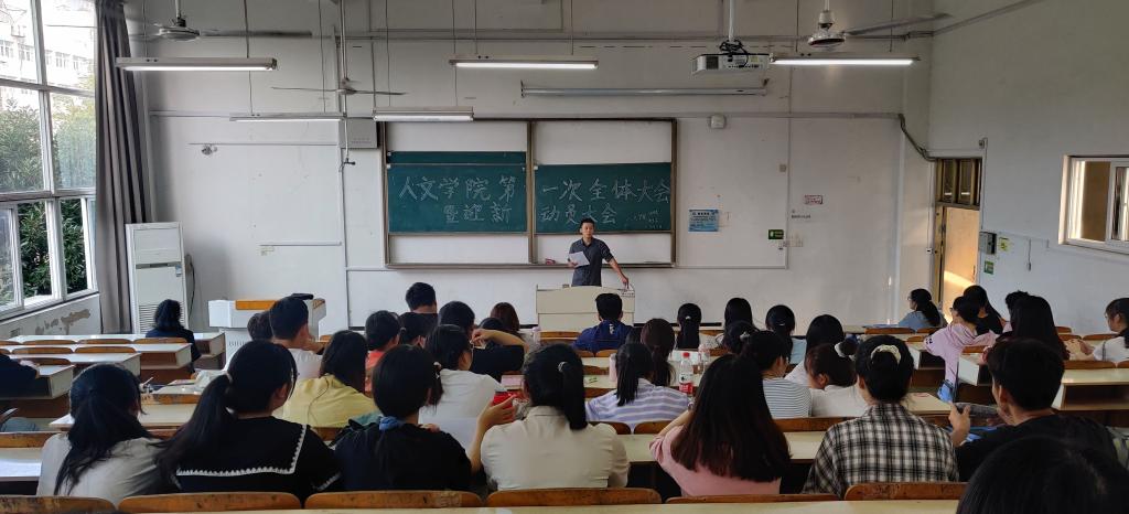 为迎接2020级新生的到来,有序开展新学期迎新工作,明晰学生会成员的主要任务,9月11日,人文学院于求知楼a楼207教室举办第一次全体大会暨迎新动员大会,会议由学生会指导老师焦雪松主持。
