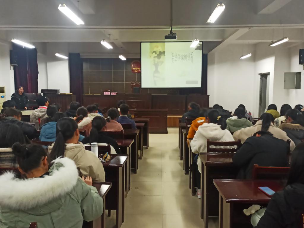 为弘扬宪法精神,维护宪法权威,使学生深入理解宪法内涵,12月3日晚,人文学院法学系主任张晓云在模拟法庭举办了“宪法案例评析”学术讲座。