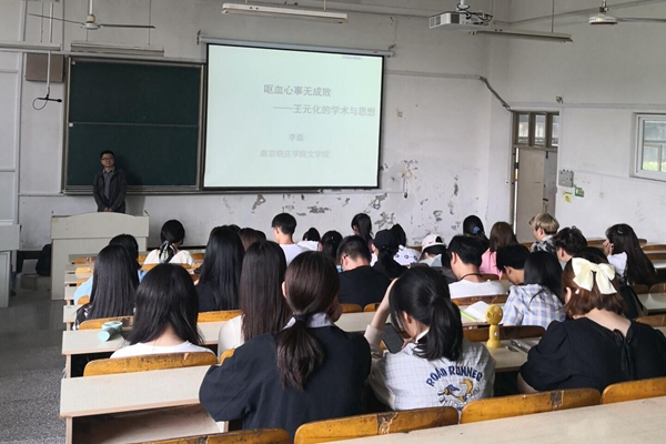 5月22日下午3:30,人文学院人文论坛第一讲在求知楼A201教室正式开讲。南京晓庄学院文学院李磊博士应邀出席,并为汉语言文学专业学生作题为《呕血心事无成败——王元化的学术与思想》主题报告。中文系主任和建伟主持报告会。