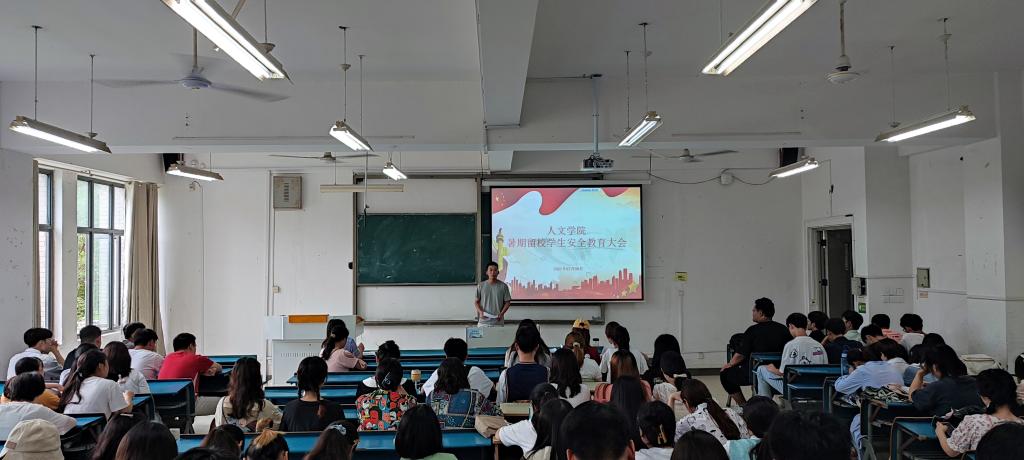 为加强学生的安全意识,切实做好暑期留校学生住宿管理和服务工作,人文学院于7月8日下午,在新知楼A110教室举行了关于做好2021暑假留校住宿学生管理工作的会议,人文学院党委副书记李沙娜、全体辅导员、暑期留校生参加会议。会议由焦雪松主持。