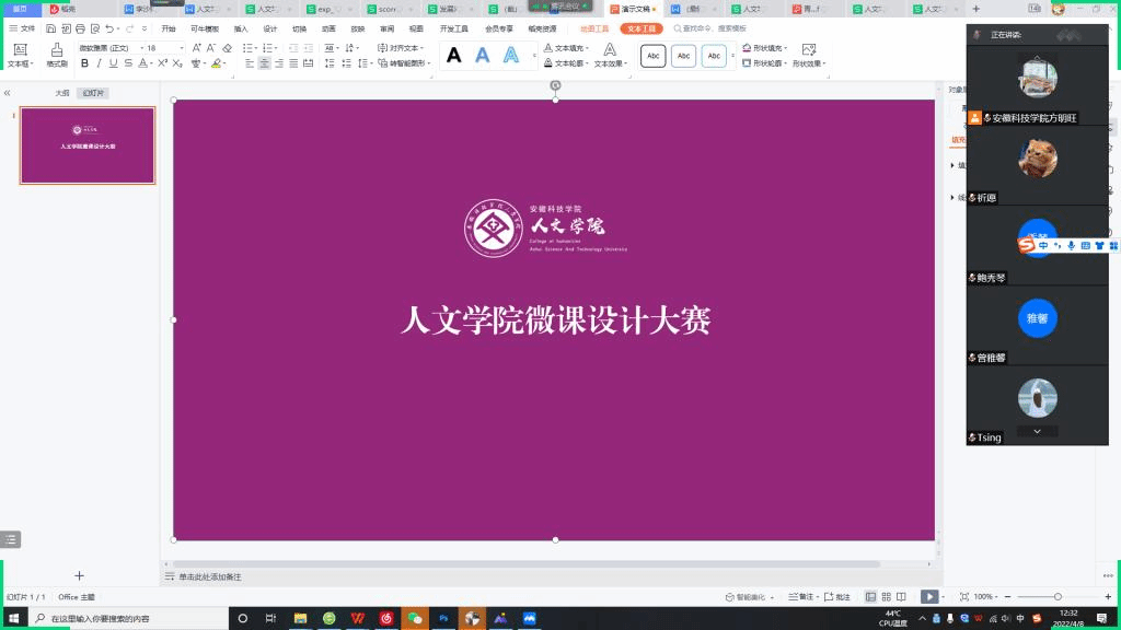 此次大赛共收到参赛作品13份,受疫情影响,本次大赛主要通过线上的方式进行评审。经过由学院领导及中文教研室教师组成的评审专家,对参赛作品按组别,从教学设计、课件制作、微课录制三方面进行综合评审,最终评选出6份优秀作品。其中汉语言文学191班汤佳慧同学作品《陋室铭》获本次大赛一等奖。