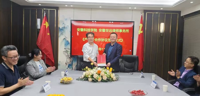 11月3日下午,人文学院党委副书记、副院长李晓东、正处级组织员张严政、副院长牛永辉、法学系主任张晓云一行赴蚌埠安徽世远律师事务所,签署产学研合作协议。安徽世远律师事务所主任陈银钱、执行主任段永梅、行政主任陈建茹等出席签约仪式。