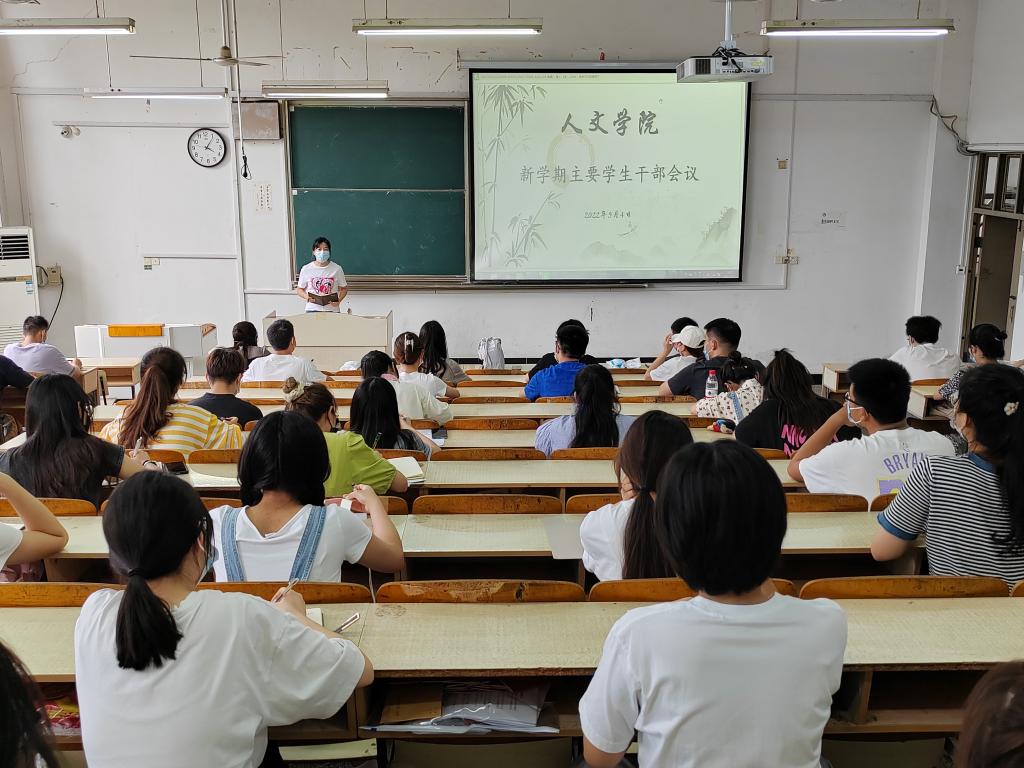 9月4日,人文学院于求A203召开新学期主要学生干部会议。学院党委副书记李沙娜、全体辅导员及班级主要班委参加。本次会议由辅导员焦雪松主持。