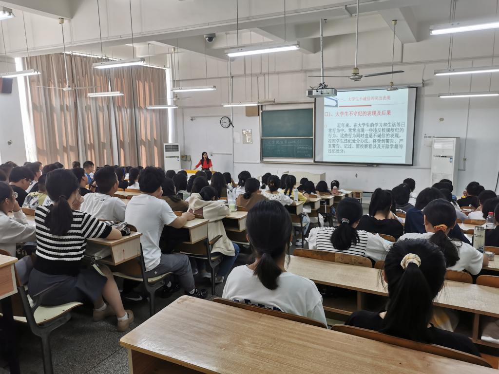 鲁冰冰讲述了诚信的含义与重要性,列举了少数大学生不守纪、不守法、不守信的突出表现及严重后果。她指出,大学生在生活方面应当遵规守纪、自尊自爱;在学习方面应当遵守课堂秩序,创建良好学风;在学术、资助、求职就业方面应该诚实守信。她带领全体新生学习了《乐动网页版登录入口_乐动网页版(中国)学生日常行为规范》,讲述了大学生校园礼仪的重要性,在宿舍群体生活礼仪、校园课堂礼仪、师生交往礼仪、参加校园集体活动礼仪等方面提出了具体要求,认真回答了同学们就学习生活方面提出的具体问题,帮助新生更好的完成“大学生”身份的转变。
