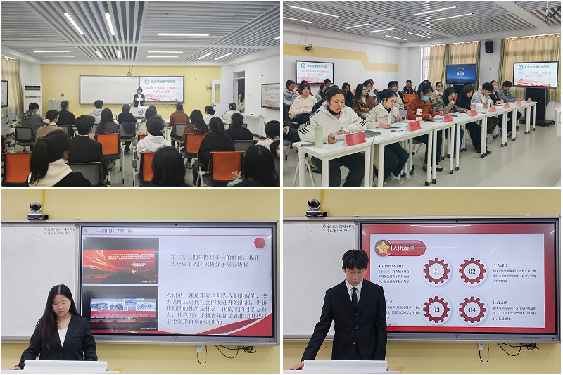 经过前期培养、考察、推荐,学院共遴选了35名候选人参与此次汇报。候选人结合PPT围绕思想政治表现、道德品质、学习工作、社会实践等四个方面进行汇报,详细阐述自己对中国共产主义青年团的认识、入团动机以及团员的责任和义务,并结合自身学习生活作出一份详细的未来规划。候选人通过团课学习,进一步坚定理想信念,提高政治素质,汇报演讲时充满了对团组织的向往,认识到中国共产主义青年团是中国青年的先进组织,是中国共产党的有力助手和后备军。