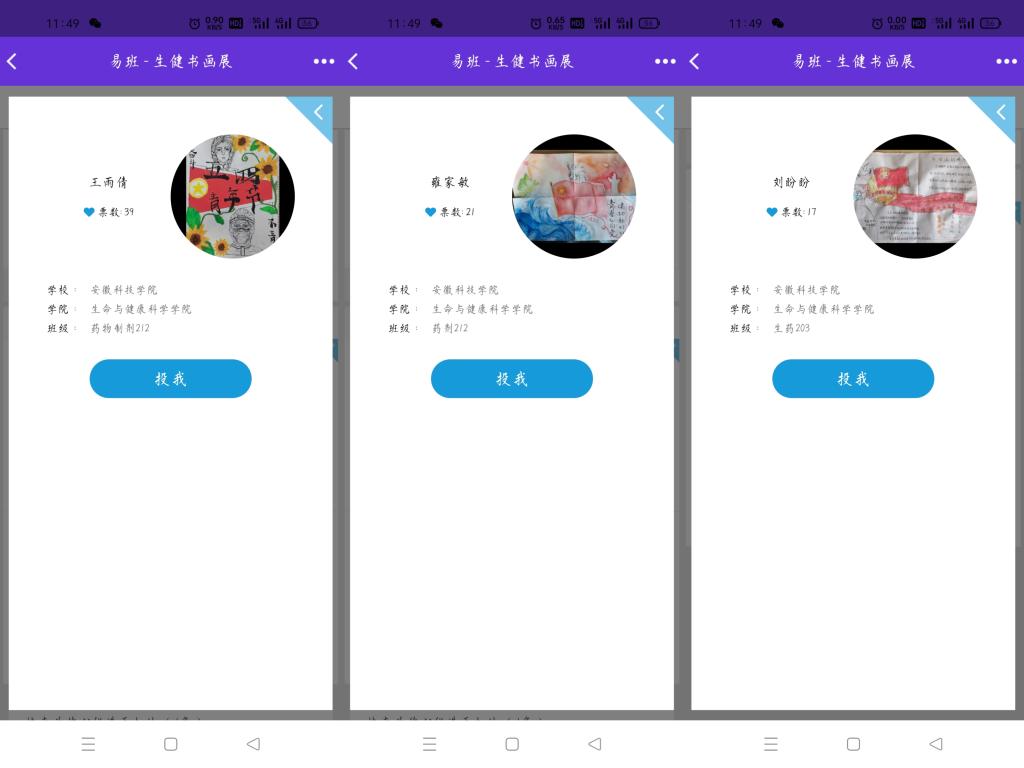 本次活动共分为易班线上投票、观众摆点投票和评委打分三个环节,作品涵盖绘画、书法、摄影三个类别,书法包括硬笔组和软笔组两个部分。在前期准备工作就绪后,学院通过宣传鼓励各班同学积极参加,吸引了许多艺术爱好者的踊跃报名,到截止日共收到36幅书画摄影作品。作品内容紧扣主题,或讴歌五四运动的历史伟绩和里程碑意义,或体现五四精神的丰富内涵,或呈现新时代青年的精神面貌和理想追求,题材丰富、形式多样、风格鲜明。征集的书法作品有奇崛遒劲的楷书、流畅飘逸的行草书、古朴俊逸的隶书,书体各异却殊途同归——皆以笔墨颂党恩;绘画作品中,或描绘山河壮锦、或挥洒碧血丹心、或临摹战“疫”英雄,画意跃然纸上——皆以丹青绘忠诚;摄影作品多是校园风景与班级风采的定格,将稍纵即逝的平凡化为不朽——皆以光影抒真情。所有作品集创新性、观赏性于一体,健康向上、立意新颖、情感真挚。经过最终评定,中药学203班郭院婷斩获摄影组第一名,药物制剂212班王雨倩获得绘画组第一名,生物工程213班李雅倩获得书法硬笔组第一名,中药学212班姚瑶获得软笔组第一名。