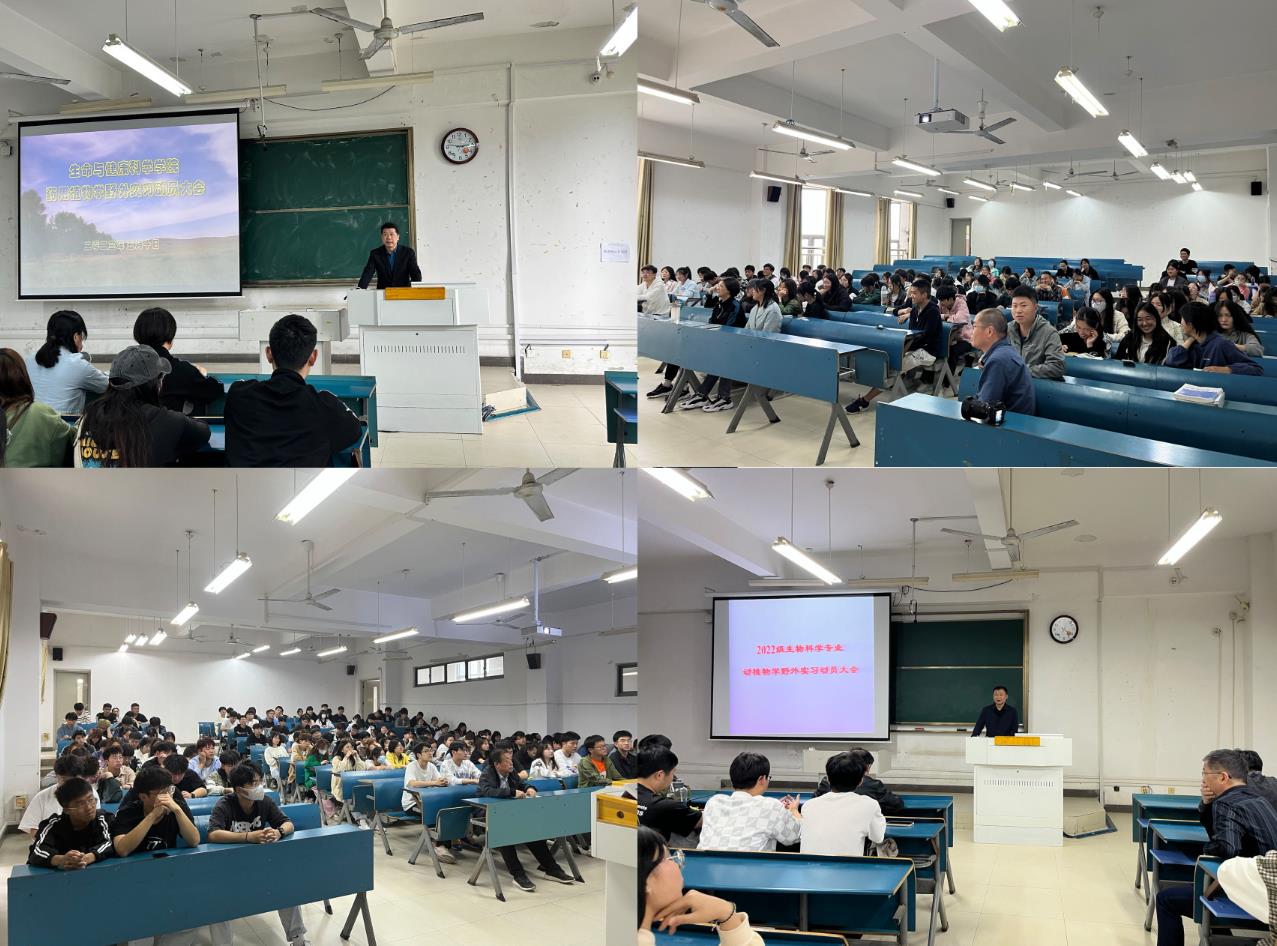 为进一步做好学生实习前的思想及实习技能培训工作,帮助学生尽快适应实习生活,生命与健康科学学院于5月10下午在新知楼B304、B404分别召开了2021级中药学专业药用植物学野外实习动员大会和2022级生物科学专业动植物学野外实习动员大会。学院党委副书记、副院长(主持工作)孙玉军,学院党委委员、副院长钱立生,实习带队教师王松、刘汉珍、崔峰、辛华夏、毛斌斌、周丽丽、刘华彬、张文文等,以及全体2021级中药学专业和2022级生物科学专业共计239名学生参加了动员大会。本次动员会由孙玉军主持。