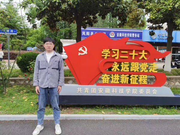 人物简介:刘亦剑,男,汉族,1999年12月出生,安徽安庆人,曾就读于安徽职业技术学院化工生物技术专业,后于2021年安徽专升本考试中被我校生物科学专业录取,今年以优异的成绩考取合肥工业大学食品科学与工程专业硕士研究生。