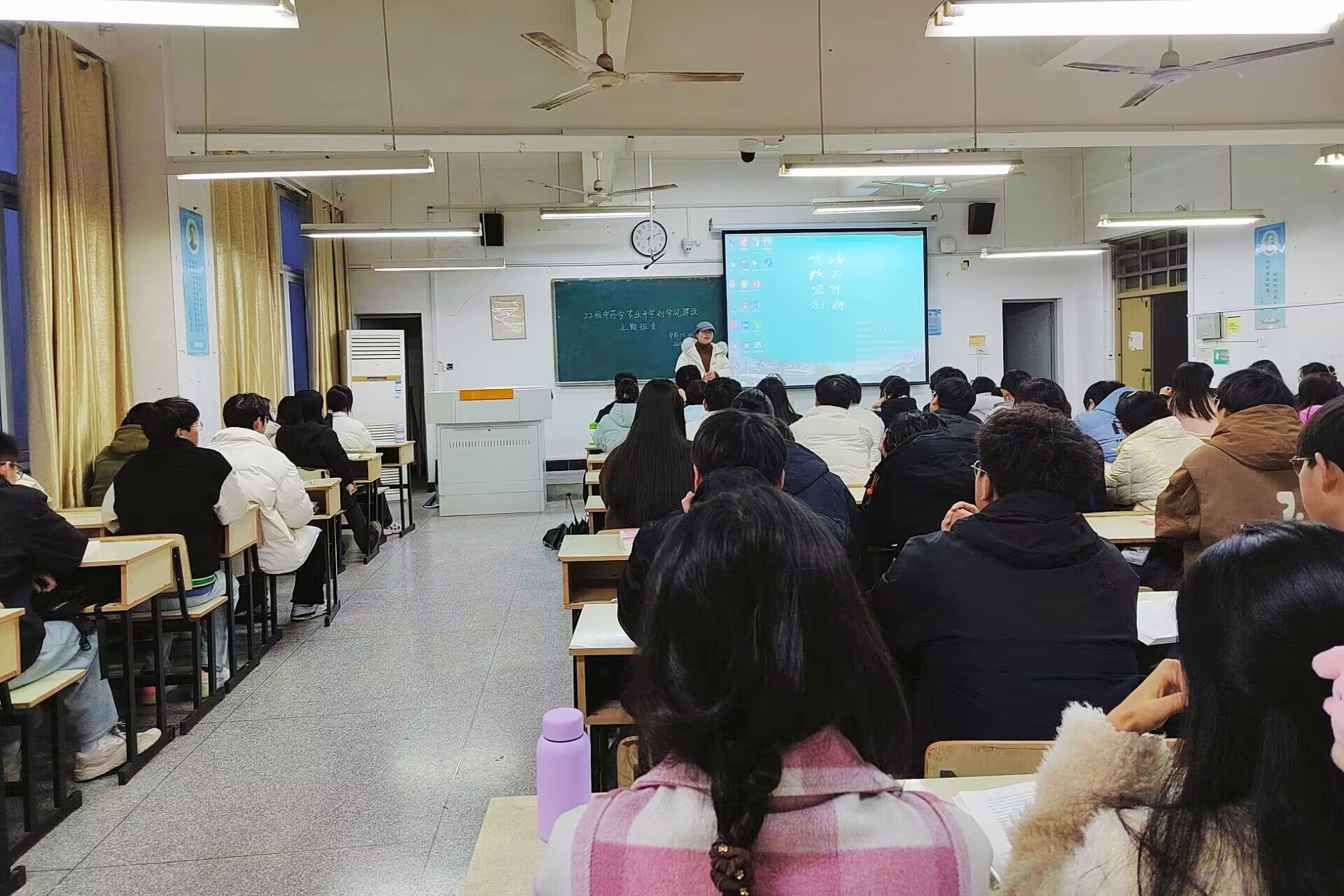 为提升辅导员与专业课教师协同育人实效,落实立德树人根本任务、增强思政教育实效性、促进大学生全面成长成才。3月8日下午,生命与健康科学学院2022级中药学专业班级辅导员邓艳萍携手班级导师孙浩和林敏两位老师,在求知楼A402教室与同学一起畅谈假期见闻,共话学风建设促成长。2022级中药学专业全体学生参加座谈会,会议由邓艳萍主持。