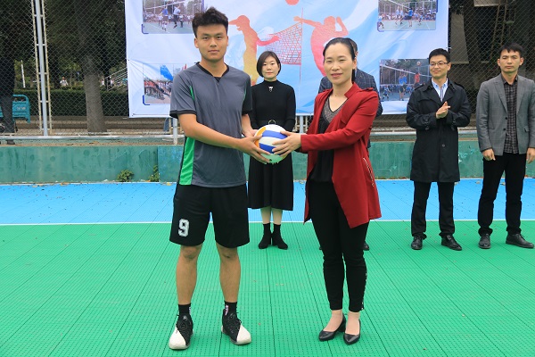 10月14日下午,我校第十一届大学生排球联赛在嘹亮的国歌声中隆重开幕。校团委书记黄立义,校团委副书记张聪、李飞跃,本届联赛裁判长李影,校团委吴汉出席开幕式。