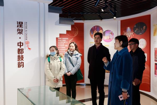 活动期间,少先队员们在基地解说员耿世本的带领下对我校创新传承非遗成果展厅进行了参观,场馆内的实景实物、多媒体影像和成果展示等,让少先队员们大饱眼福,深得他们的喜爱。通过参观,少先队员们对凤阳花鼓的起源、流转和变迁有了深入的了解。活动现场大学生花鼓艺术团的花姑娘们为少先队员们表演了凤阳花鼓,并手把手教授花鼓打法和动作,使他们亲自参与其中进行体验互动,零距离的接触传统文化,感受优秀传统文化的无限魅力。
