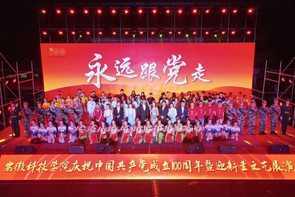 传承优秀文化,续写百年风华。10月21日、24日晚,我校庆祝中国共产党成立100周年暨迎新生文艺展演分别在凤阳校区和蚌埠校区体育场举行。党委书记蒋德勤,党委副书记、校长李震,党委委员、副校长黄远友,党委委员、纪委书记、监察专员王强,党委委员、副校长黄友锐,党委委员、副校长李升和出席演出活动。莅校参加全国农科研究生志愿服务联盟第一届第二次会议的领导和专家应邀出席,与我校师生代表、全体2021级新同学7000余人分别欣赏两校区精彩的演出。