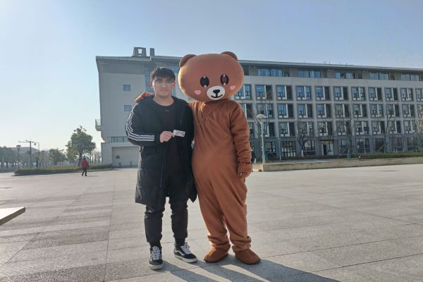 亦有身着玩偶服的工作人员给考研学子送上热情的拥抱。