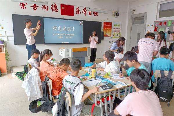 有人说,每个孩子都是一个小天使,而那些生理上有障碍的孩子则是被折翼的天使。实践团一行来到听障四年级一班教室,在与班主任胡向红老师交流活动内容后,纷纷用手语向孩子们介绍自己的姓名和爱好,不太娴熟的肢体展示拉近了同孩子们的距离,开启了别样的“五育”互动。