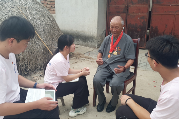 陈凤兰拉着实践团成员的手打开了话匣子,讲起了他当年抗美援朝的故事。