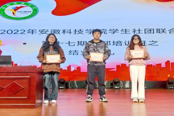 为进一步加强对我校学生社团工作的管理、监督和引导,规范学生社团运行,近日,我校分别在凤阳校区大学生活动中心和龙湖校区致知楼A108举行社团联合会第十七届干部培训班结业典礼,并为优秀学员颁发荣誉证书。
