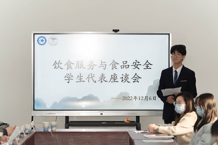 座谈会上,学生伙食民主管理委员会叶莉雯就本学期伙管会工作开展情况、食堂检查情况进行了汇报。韩康通报了本学期各食堂的运营状况以及日常监管情况。
