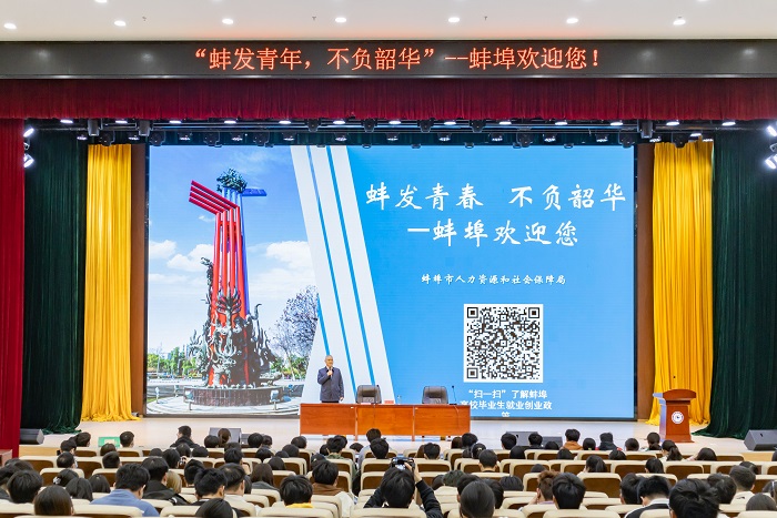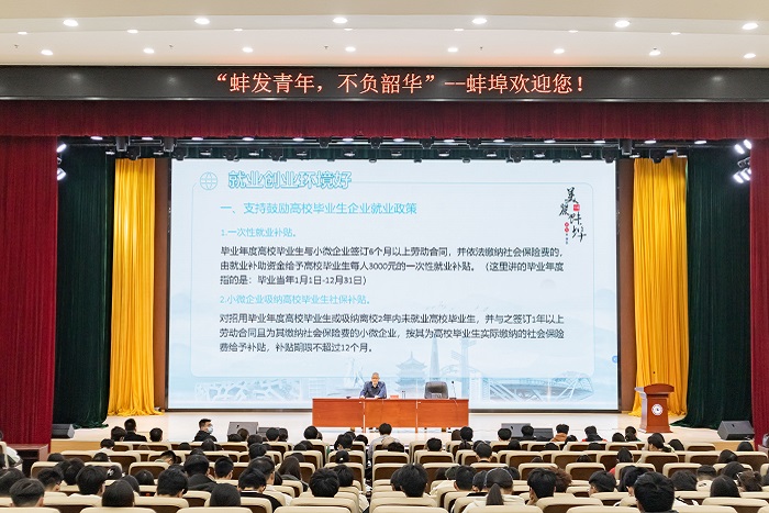 3月15日下午,我校青年马克思主义者培养工程暨第八期团校在龙湖校区报告厅顺利开展。蚌埠市人社局党组书记、局长袁成文应邀走进青马课堂,以“蚌发青春,不负韶华”为主题,为青马学员们带来了一堂生动的就业指导课。
