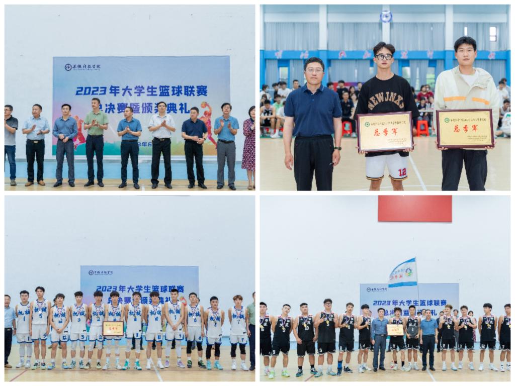 与会领导分别为2023年大学生篮球联赛总冠军、亚军,常规赛MVP以及总决赛MVP等团队和先进个人颁奖并合影留念。(特约通讯员:张古品 摄影:韩紫雯 李亚星 审核:李刚 )