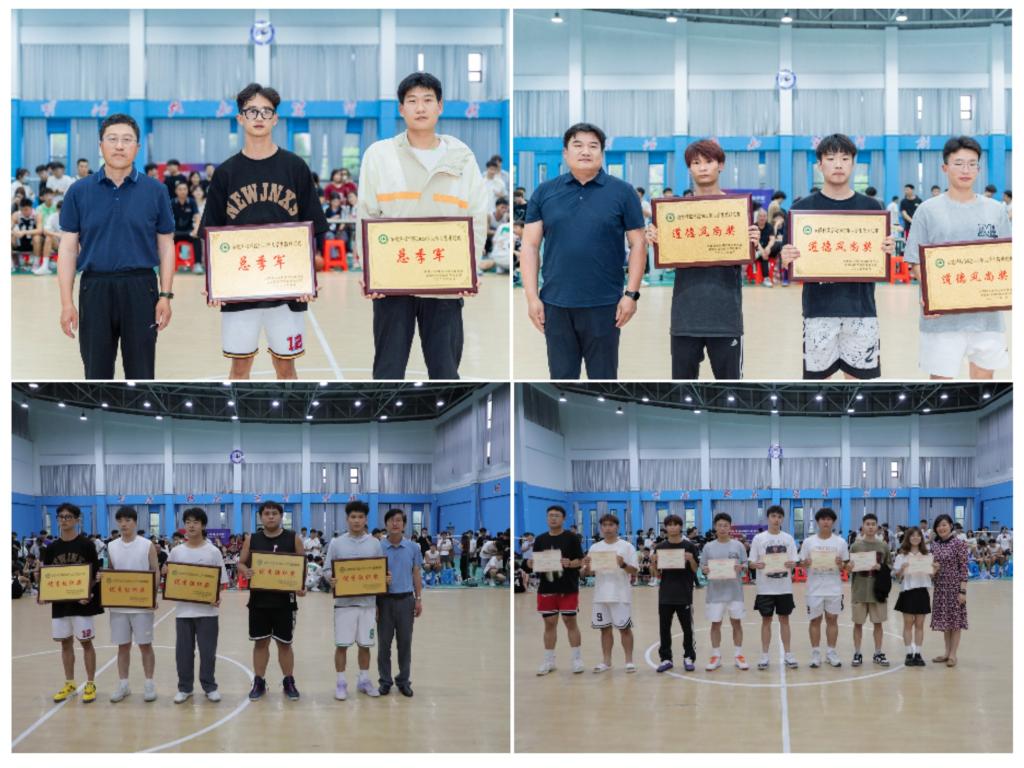 与会领导分别为2023年大学生篮球联赛总冠军、亚军,常规赛MVP以及总决赛MVP等团队和先进个人颁奖并合影留念。(特约通讯员:张古品 摄影:陈宝 韩紫雯 李亚星 审核:李刚)
