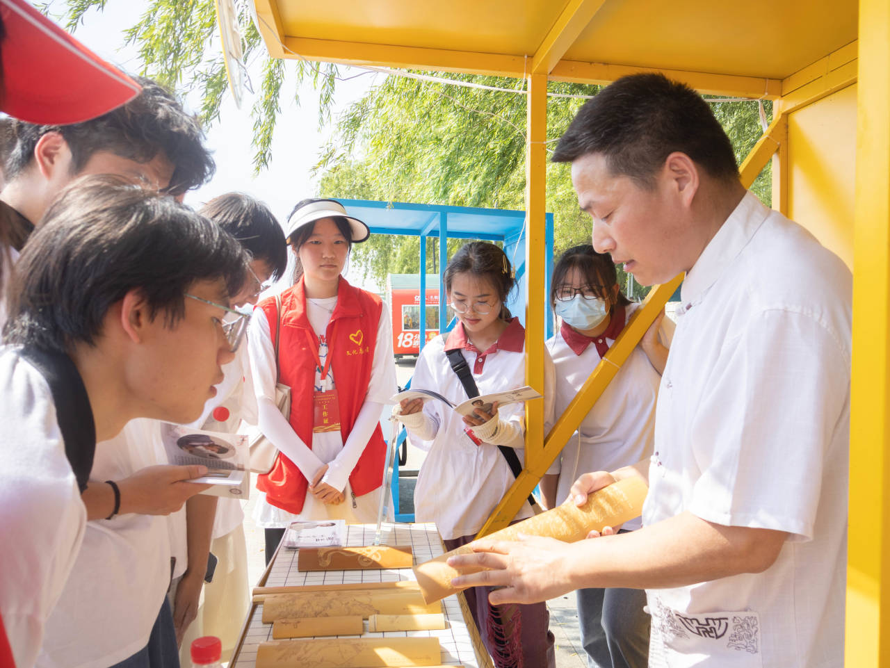 “在第18个‘文化和自然遗产日’到来之际,乐动网页版登录入口_乐动网页版(中国)建筑学院‘拾遗’发展成就观察团,深入到活动一线,在蚌埠市文化馆的统一部署下,积极投入到蚌埠市非遗展演幕后和非遗购物节服务工作中来”,随着一段视频导入语,孩子们的目光纷纷被现场团队成员参与非遗志愿服务的短视频吸引过来,并被团队成员的热情和努力所感染。从视频剪辑中,孩子们欣赏了剪纸、糖画、蛋雕和虎头鞋等传统手工艺品,了解董记广龙臭豆腐、生炸丸子等美食的制作过程。这些展示激发了孩子们对传统文化的浓厚兴趣和热爱。观看完视频后,孩子们感慨万分地说:“太棒了!下次我也要像大哥哥大姐姐们一样,参与到这些有意义的活动中来!”