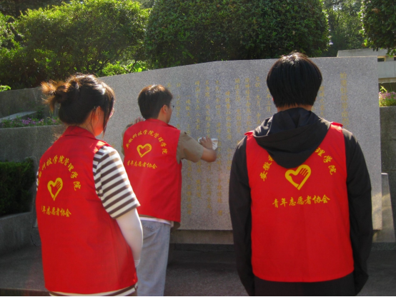 默哀后,团队成员们又拿出携带的抹布仔细清理纪念碑前的碑文。这碑文记载的,是英雄的伟大,是先烈的无畏。虽然他们已经离去,但他们不怕困难、不畏艰险、英勇献身的精神却早已深深的融入我们的血脉。