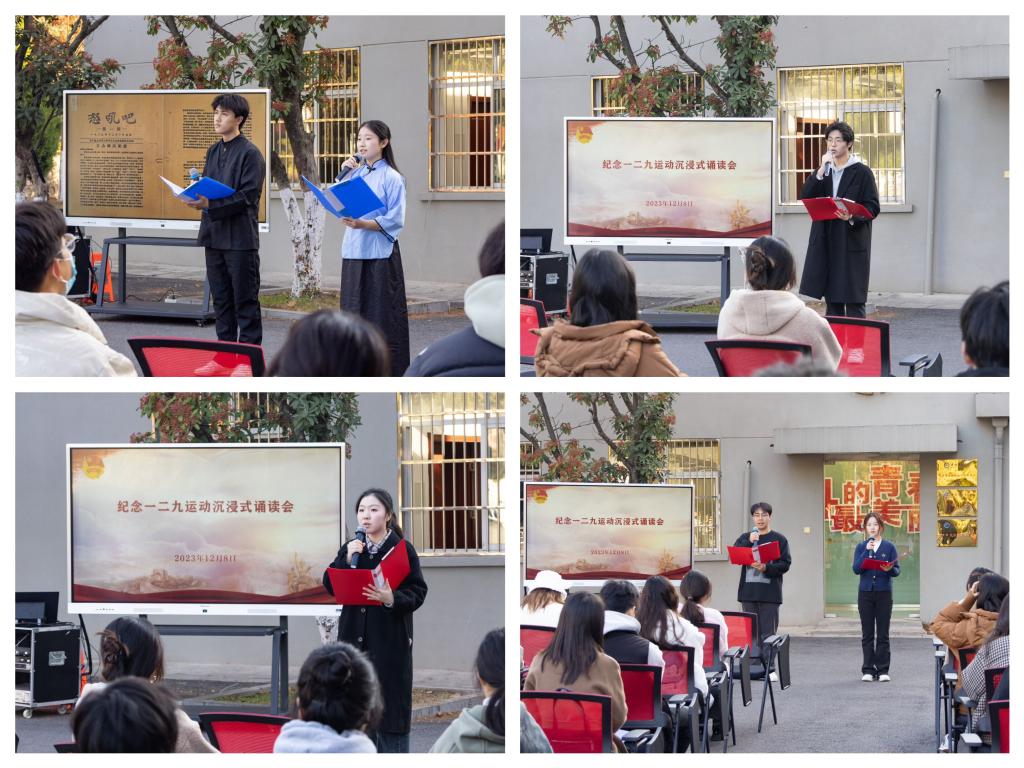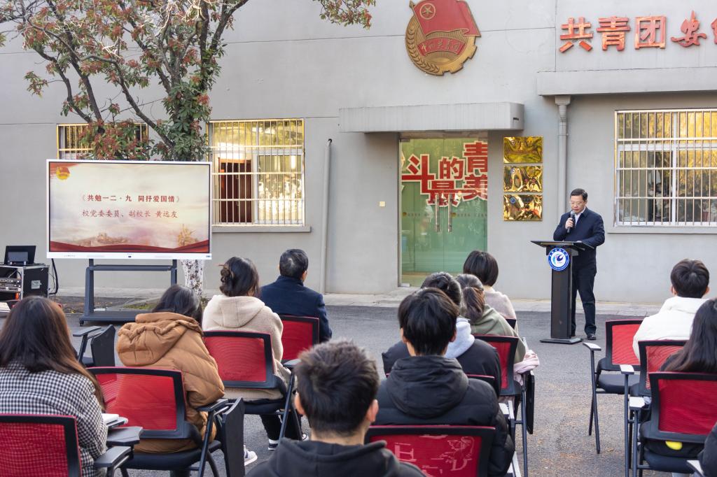 12月8日上午,乐动网页版登录入口_乐动网页版(中国)纪念“一二·九运动”沉浸式诵读会在凤阳校区五四广场举办,校党委委员、副院长黄远友与现场同学们一道,以沉浸式诗文朗诵的形式,开展了一场别开生面的思政课。