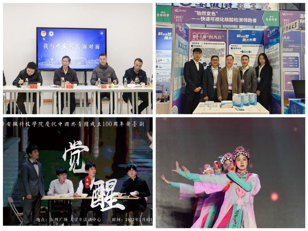 学校共青团紧扣团的根本任务、政治责任和工作主线,丰富第二课堂建设,建设多元一体化的实践育人服务平台,培养德智体美劳全面发展的社会主义建设者和接班人。获批安徽省非物质文化遗产传承基地、安徽省非物质文化遗产教育传习基地,安徽省实践育人基地,开辟优秀传统文化传承新模式、新途径,深度发掘地方文化蕴含的历史价值、精神价值和思想价值。探索“艺术+思政”教育模式,依托五四、七一、十一、一二九及迎新、毕业等重要时间节点推进美育与思政教育深度融合,量体裁衣打造独具“安科味”的思政育人模式,人民日报、中国日报进行专题报道。获得国家级、省级大学生艺术展演奖项15次。营造积极、健康、高雅的校园文化氛围,连续4次获评安徽省校园读书创作活动“优秀组织奖”,获评安徽省第二届、第五届校园读书创作活动“优秀读书品牌活动奖”。