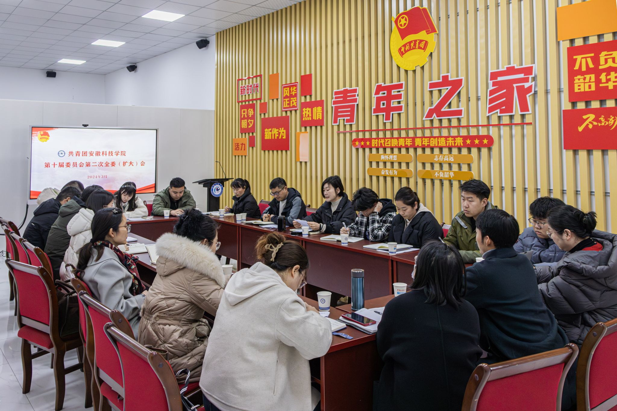 团委书记张聪向会议作2023年团委工作报告,报告充分肯定了各学院基层团组织的工作成效。张聪指出,2023年我校各级共青团工作结合实际、发挥团学优势,在大学生创新创业、美育教育、社会实践等方面取得了新的突破。今年是新中国成立75周年,是实施“十四五”规划关键一年,各级团学组织要加强理论学习,掌握看家本领,把学习成效转化为做好本职工作、推动事业发展的生动实践。她希望各基层团委书记对照团省委2024年工作要点和学校党政工作要点认真谋划2024年工作,把共青团工作放到现代化美好安徽建设大局中去思考,放到全校发展“一盘棋”中谋划,做到常规工作有条不紊,重点工作保质保量,创新工作亮点频现。