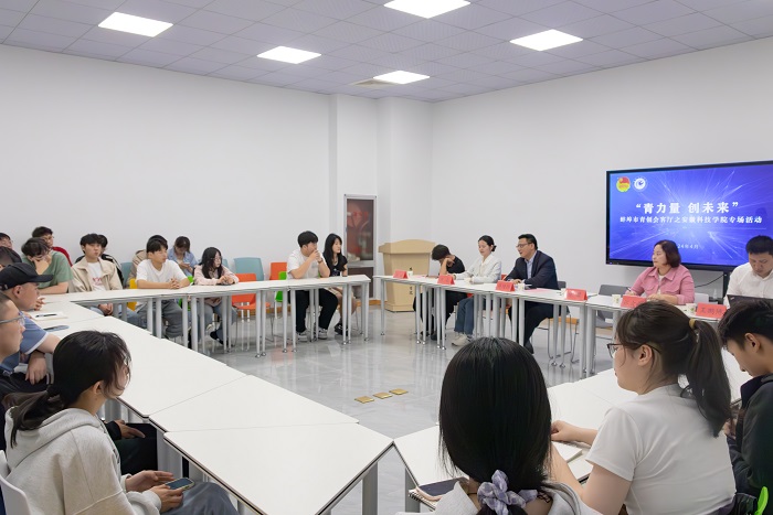 创新奇智(蚌埠)科技有限公司总经理、安徽省大学生就业引航导师、安徽省青联委员、蚌埠市青联副秘书长王鹏博和蚌埠摩缘商贸有限公司总经理刘欢结合自身的创业经历与代表们深度交流互动,就大学生在创业过程中面临的困难、困惑给予了针对性意见和建议。学生代表们结合自己的所思所想,踊跃发言、积极讨论,畅谈了个人创业感受和想法。
