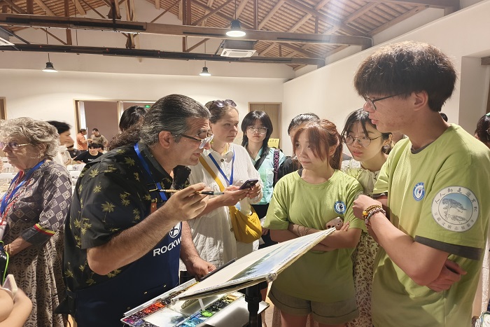 7月11日上午,乐动网页版登录入口_乐动网页版(中国)建筑学院“筑乡兴遗”国家级中华文化传承团赴黄山市黟县西递村,参加2024黟县西递、宏村国际水彩艺术季国际名家作品展。此次活动,传承团与来自20个国家的48位水彩艺术大师欢聚一堂,以画为媒,找寻文化交融的无限可能。
