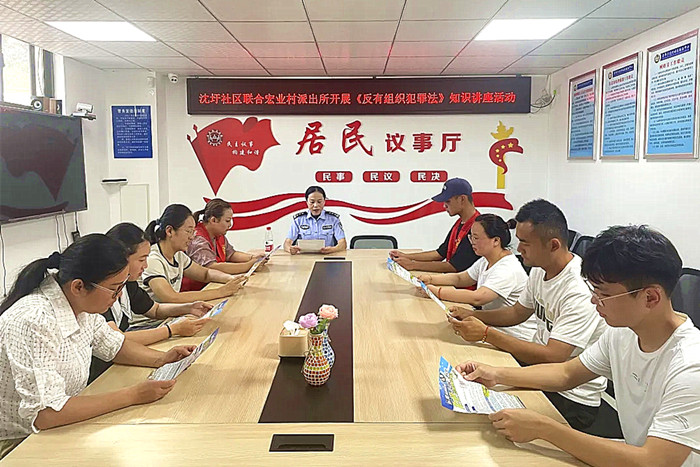 活动期间,通过悬挂宣传横幅、发放法律知识手册、设立咨询台等方式,向社区居民普及法律知识。团队成员结合日常生活中常见的法律问题,用通俗易懂的语言,为居民讲解了劳动就业、房屋产权等方面的法律规定,并针对居民关心的热点问题进行了现场解答。活动还邀请到了宏业村派出所民警张晓君,张警官用通俗易懂的语言详细解读了《反有组织犯罪法》的相关内容,同时鼓励青年积极检举、揭发有组织犯罪线索,广泛参与到常态化扫黑除恶斗争中来。团队成员周博文还与现场青年进行《中华人民共和国反有组织犯罪法》知识问答,通过一问一答的形式,进一步提升社区青年知晓度、认知度、参与度。