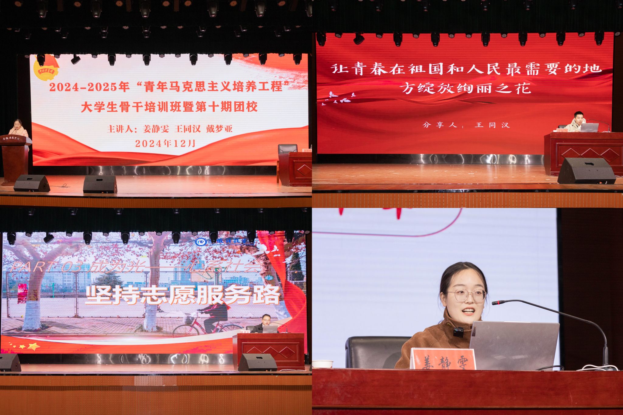 三位主讲人以亲身经历,向学员们展现了志愿服务与基层实践对青年成长的重要意义,引领青年学员踊跃投身其中,于奉献中谱写壮丽青春,为民族复兴注入强劲青春动能。